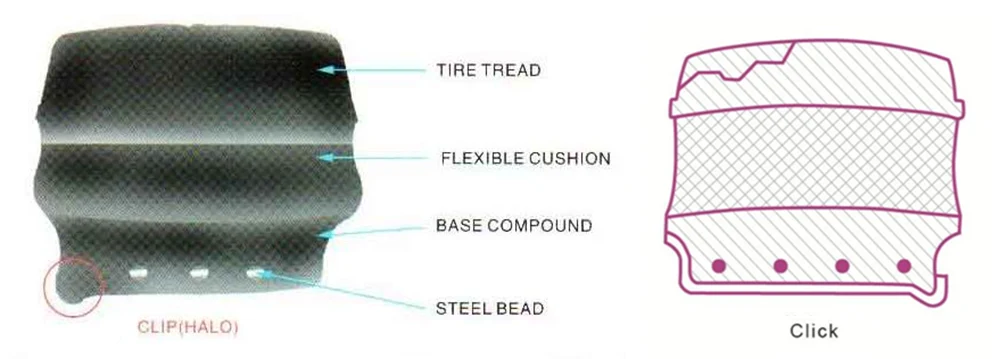 लवचिक रबर कंपाऊंड स्टँडर्ड सॉलिड टायर्सपेक्षा नितळ राइड सुनिश्चित करते.